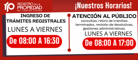 Asunto: Nuevo horario de atención al público en el Registro de la Propiedad del cantón Cuenca